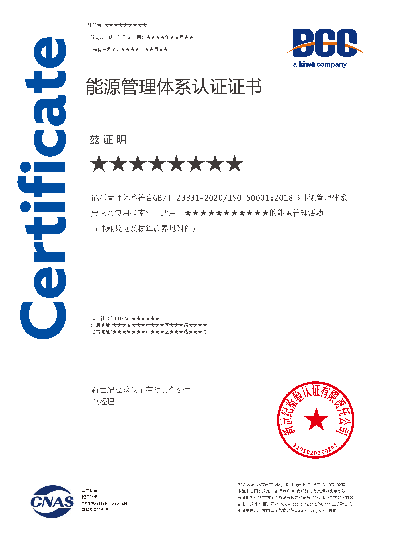 除此以外,申請(qǐng)能源管理體系認(rèn)證的企業(yè)還需提交一些輔助資料,如用能單位及邊界描述;能源使用和消耗情況等。